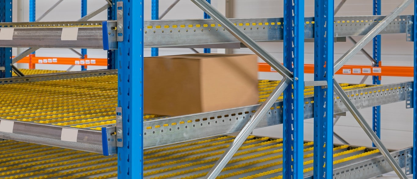 010 – Módulos de estrutura Flow Rack com 2.300 mm entre colunas x 1.000 mm de profundidade x 2.000 mm de altura com 4 níveis de carga, aptos a suportar uma carga uniformemente distribuída de 300 kg por plano de carga. Gerando uma capacidade de armazenagem de 40 Planos de carga.